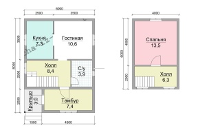 | Под усадку (без отделки) | 6х8 | Cруб дома 190х140 мм | 1370600 | Заказать |